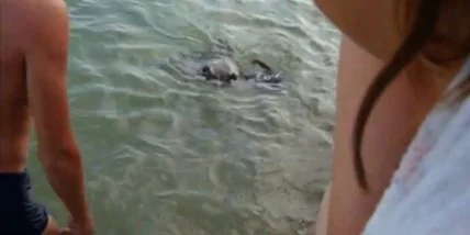 6 июля на побережье Черного моря отдыхающие заметили необычное животное, которое приближалось к берегу. Большого темного гостя встречали и взрослые и дети.