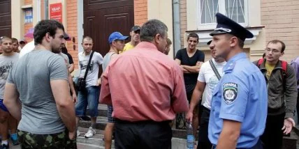 "Несколько минут назад поступила информация, в дежурную часть, что около 250 человек пришли в офис партии "УДАР" в городе Киеве. По предварительной информации, эти люди агрессивно настроены и выкрикивают лозунги: "Верните нам наши деньги".