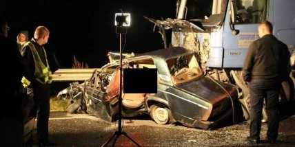 Возвращаясь обратно, издалека было видно много синих «мигалок». Движение было остановлено. Сразу стало понятно — что-то серъёзное. Миновав всю стоящую очередь по встречной полосе, и подобравшись как можно ближе, мы вышли, и побежали к месту ДТП. Картина была жуткая. «Жигули - пятёрка» буквально вмазалась в передок фуры. В салоне икорёженного автомобиля было четыре трупа. Пятый находился под кабиной тяжеловеса.