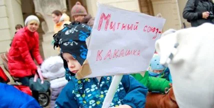 На марше за ЕС прошли дети с плакатами "Таможенный союз - какашка!"