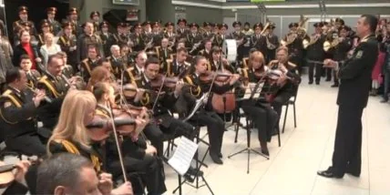 Сегодня у семи аэропортах страны состоялась акция “Спільне повітря”, во время которой симфонические оркестры исполнили “Оду к радости”. Данная композиция Людвига ван Бетховена была принята гимном Европейского союза. В аэропорту Киева композицию исполнили музыканты Президентского оркестра и Академического ансамбля вооруженных сил Украины. Кроме этого они исполнили духовный гимн Украины “Боже великий, єдиний”.