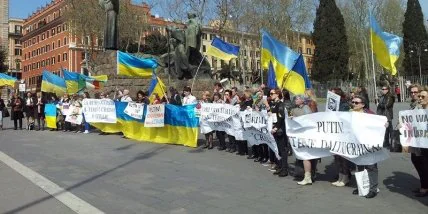 Впервые за все время проведения акций Евромайдана в Риме, полиция сделала замечание по поводу плаката, на котором было написано "Путин = Гитлер". Инспектор отметил, что такая надпись оскорбляет руководителя суверенного государства. На это замечание возмущенные манифестанты ответили, что действия Путина в Крыму аналогичны действиям Гитлера в Австрии, и российские власти, оккупировав Крым, заслуживают такого определения, так как своими действиями оскорбляют весь украинский народ.