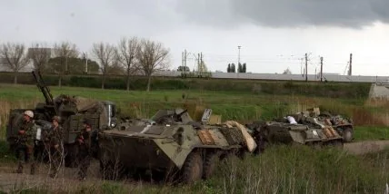Двое военных погибли во время того, как 12 БТР и 5 автомобилей освобождались из окружения их мирными жителями. "После того, как договорились о выводе, эта группа попала в засаду и погибли двое солдат", - сообщил В.Крутов.