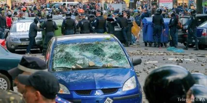 По информации милиции, с верхних этажей здания нападающие начали забрасывать мирных граждан бутылками с зажигательной смесью и вести по ним огонь из огнестрельного оружия. В результате использования злоумышленниками "коктейлей Молотова" возник пожар, который с верхних этажей распространился на значительную площадь здания и стал причиной гибели более 40 человек.