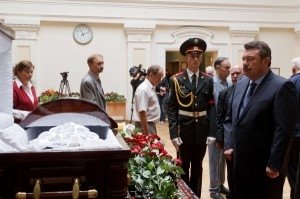 Сегодня с телом Ивана Плюща пришли простится как простые украинцы, так и многие украинские политики, среди них: Арсений Яценюк, Виктор Ющенко, Леонид Кравчук, Александр Мороз, Николай Маломуж, Александр Турчинов, который возглавил комиссию по захоронению.
