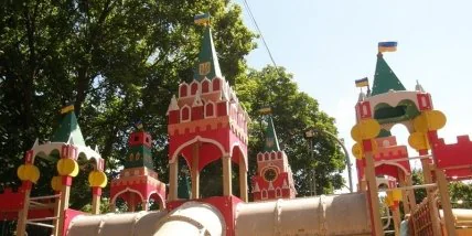 Харьковский Кремль стал украинским. Речь идет о детской площадке, построен в виде резиденции российского президента. Активисты решили предоставить игровые крепости более патриотического вида.