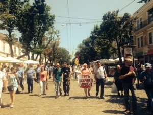 В субботу 12 июля в 12:00 возле Дюка по инициативе предпринимателей города и при поддержке неравнодушных одесситов прошло первое в Украине антикоррупционное шествие против взяточничества и коррупции, которые мешают городу развиваться и выполнять требования подписанной ассоциации с ЕС.