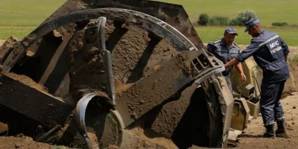Сотрудники Южного регионального управления Госпогранслужбы Украины роют противотанковый ров на границе с непризнанной Приднестровской молдавской республикой в Одесской области.