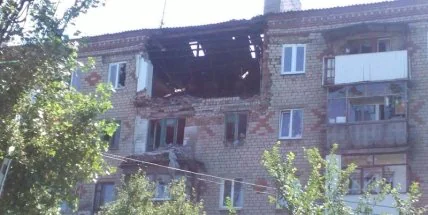 Повреждены снарядами и осколками и соседние пятиэтажные дома, один из них загорелся.