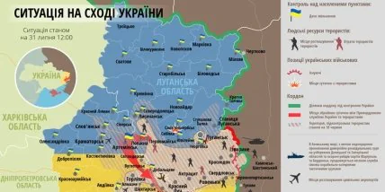 Карта ситуации на Востоке Украины по состоянию на 31 июля