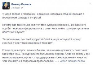 На своей странице в Facebook Виктор Пшонка заявил, что не собирается разводиться со своей женой.
