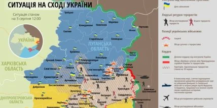 Карта ситуации на Востоке Украины по состоянию на 3 августа