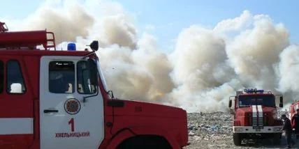 60 спасателей пытаются потушить полигон твердых бытовых отходов в Хмельницком.