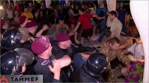 "В результате провокационных действий группы лиц, которые пытались сорвать выступление и не допустить проведения концерта, было совершено нападение на правоохранителей с целью прорвать их живой кордон, в результате чего нанесены металлическим предметом телесные повреждения в область головы работнику специального батальона милиции.