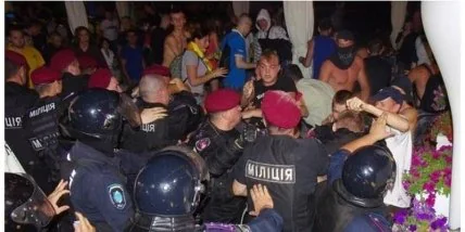 "В результате провокационных действий группы лиц, которые пытались сорвать выступление и не допустить проведения концерта, было совершено нападение на правоохранителей с целью прорвать их живой кордон, в результате чего нанесены металлическим предметом телесные повреждения в область головы работнику специального батальона милиции.