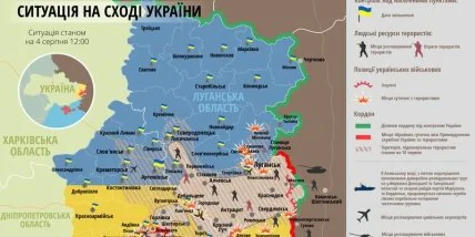 Карта ситуации на Востоке Украины по состоянию на 4 августа