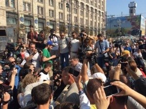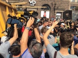 "Работаем на Крещатике, Городецкого, Костельной. Об Институтской речи нет. Мы намерены сегодня освободить всю проезжую часть, кроме Институтской», - сообщил П. Береговой.