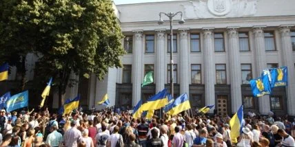 Под зданием Верховной Рады Украины началась акция протеста с требованием от депутатов принять закон о люстрации.
