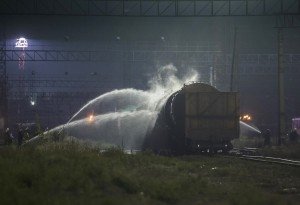 Напомним, вчера в Харькове на железнодорожной станции "Основа" горели 4 цистерны с реактивным топливом, которые были частью грузового поезда. "В г. Харьков в 19 час. 45 мин. 12 сентября на железнодорожной станции "Основа" в грузовом поезде № 3001, который состоял из 4 цистерн и 50 пустых вагонов возник пожар. Огнем повреждены 4 цистерны с реактивным топливом и 4 пустых вагона. пожар локализован в 21 час. 25 мин., ликвидирован в 23 час. 53 мин. Жертв и пострадавших нет", - говорится в сообщении.