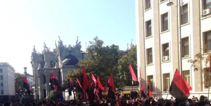 В среду утром, члены партии "Правый сектор" организовали митинг под зданием АПУ. Активисты требовали от президента Петра Порошенко не подписывать принятые во вторник законы.
