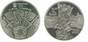 Национальный банк Украины вводит 15 октября в обращение памятную монету "500-летие Битвы под Оршей" номиналом в 5 гривен.