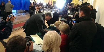 Глава государства проголосовал в Центральном доме офицеров Вооруженных Сил Украины.