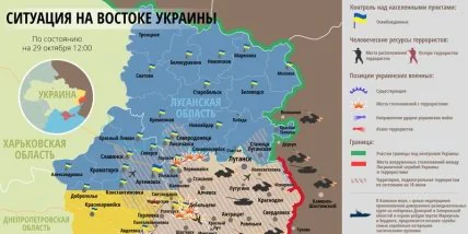 Данные разведки свидетельствуют, что 2 ноября на территориях, контролируемых боевиками, прежде всего, в Донецке и его окрестностях готовится серия масштабных провокаций с человеческими жертвами. Получены данные, что боевики на свои танки наносят маркировку и надписи НГУ и ВСУ. Бандгруппировки ДНР и ЛНР для осуществления провокаций заказали пошив и уже передали в пользование более 3 тысяч единиц форменного обмундирования Национальной гвардии Украины. На неподконтрольные территории прибывают журналисты российских СМИ для освещения хода незаконного опроса 2 и 9 ноября.