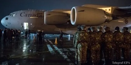 В Киев прибыл самолет с первой военной помощью от Канады, который доставил защитное снаряжение, медикаменты и теплую одежду для военнослужащих, сообщает "Радио Свобода" в воскресенье.