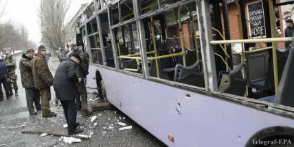 22 января в результате попадания снаряда в остановку общественного транспорта в Донецке погибли мирные жители (Обновляется).
