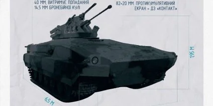 "Новая машина будет сочетать в себе надежность танка и емкость БМП (боевой машины пехоты). Конструкторы, учитывая пожелания военных, установят на гибрид современную динамическую защиту типа "Контакт", которая повышает "живучесть" техники. Кроме того, броня будет способна выдержать попадание бронебойных пуль, выстрелы гранатомета и даже подрывы на противотанковых минах," — рассказал Пинькас.