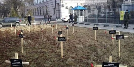 Перед посольством РФ в Киеве активисты установили памятные кресты