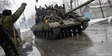 "Группа носит ярко выраженный ударный характер (как минимум 15 танков, до 10 крытых армейских грузовиков, шесть 120-мм миномётов, 2 БМП-2 и 1 командно-штабная машина на базе БТР-80", - рассказал Тымчук.
