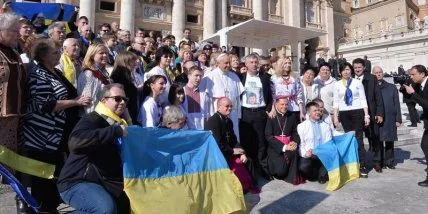 Святейший Отец поздравил паломников из Украины в конце общей аудиенции в среду, 18 февраля 2015 года. Также он сфотографировался с украинскими паломниками и держал в руках футболку с изображением украинской летчицы Надежды Савченко, которая содержится в российском СИЗО и голодает в знак протеста.