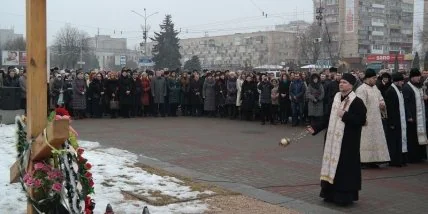 Поклониться Героям Небесной Сотни на Соборную площадь пришли черкащане и гости города, которые несли живые цветы и лампадки с зажженными свечами.