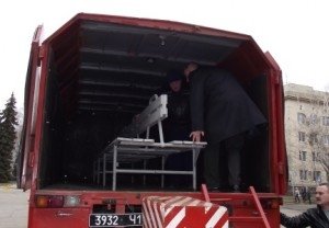 "К сожалению, в последнее время мы не можем осуществить безопасное перемещение людей, ведь боевики минируют автодороги и ведут прицельные обстрелы по автобусам. Поэтому сейчас в Донецкой и Луганской областях работают сводные отряды мобильного спасательного центра ГСЧС и межрегионального центра быстрого реагирования Службы, проводят разведку территорий и выискивают возможные пути безопасного вывоза людей. Как только такие пути будут найдены, наши спасатели совместно с местными властями на этом КАМАЗе, а также на двух КрАЗах переданных нашей службе Правительством, начнут вывоз людей", - отметил С.Бочковский.