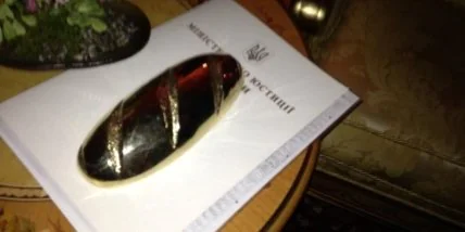 Напомним, ранее в ГПУ выяснили, что экс-президенту Украины В.Януковичу массивное золотое пресс-папье в виде батона в натуральную величину весом 2 килограмма подарили. Его нашли в бывшей резиденции В.Януковича в Межигорье активисты после побега гаранта.