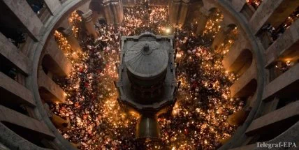 Тысячи людей в Великую субботу стали свидетелями схождения Благодатного огня в храме Гроба Господня в Иерусалиме.