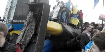 Общественность города Краматорска решила свергнуть памятник Ленину, не дожидаясь решения органа местного самоуправления.