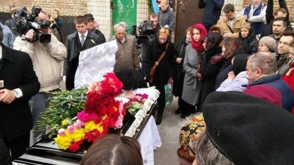 "В Киеве на ул. Дегтярёвской, 58 проходит прощание с Олесем Бузиной. Проводить в последний путь застреленного известного писателя и журналиста пришли не только родные и близкие, но и поклонники его творчества", - говорится в сообщении.