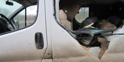 Боевики обстреляли микроавтобус волонтеров из организации "Свободные люди" (Харьков) близ Горловки.