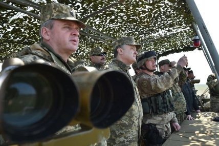 На 235 общевойсковом полигоне Сухопутных войск ВСУ вблизи Николаева Порошенко вместе с начальником Генерального Штаба-Головнокомандующим ВС генерал-полковником Владимиром Муженко, командующим Высокомобильными десантными войсками ВС полковником Михаилом Забродским и секретарем СНБО Александром Турчиновым наблюдал за действиями подразделений 95-й отдельной аэромобильной бригады, 25-й отдельной Днепропетровской воздушно-десантной бригады и 79-й отдельной аэромобильной бригады.