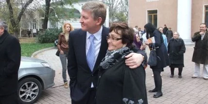 Президент ФК "Шахтер" Ринат Ахметов вместе с мамой проголосовал в своем родном городе на избирательном участке № 141 859.