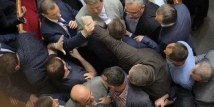Во время выступления Ляшко народные депутаты Радикальной партии подошли к народным депутатам Оппозиционного блока, но драки не было.