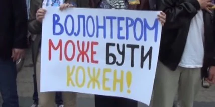 В центре Львова около 500 волонтеров, взявшись за руки, образовали живую «цепь», затем каждый из участников „цепи” поставил свою подпись на 10-метровом полотнище Государственного Флага Украины, который, по их замыслу, должен стать Флагом единства волонтерского движения Украины.