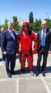 "И.. я нашел способ похудеть. Два часа работы в таком костюме и буду худой как оловянный солдатик. От ударов премьеров будущий полицейский не пострадал", - констатировал глава ведомства.
