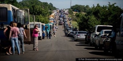 Обновлено 20:43 Чтобы уехать из оккупированной территории Донбасса, людям приходится простоять в очереди из-за закрытия большинства пунктов пропуска.