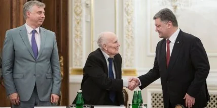 "С 2015 года в пределах общего финансирования Академии мы положили начало целевой научной программе по проблемам повышения обороноспособности и безопасности государства. И уже начато выполнение отобранных по конкурсу наиболее перспективных проектов", - сообщил Б.Патон на встрече ведущих ученых страны с президентом Украины Петром Порошенко.