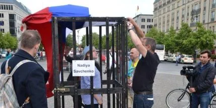 Во время митинга активисты устроили колоритный флэш-моб в центре Берлина с требованием освободить Надежду Савченко.