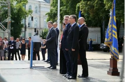 Глава управления патрульной службы г. Киев Александр Фацевич зачитал текст присяги, после чего все присутствующие на мероприятии исполнили гимн Украины. Глава государства Петр Порошенко поздравил полицейских с принятием присяги и заявил, что «в столице вам иногда будет не легче, чем воинам на Донбассе».