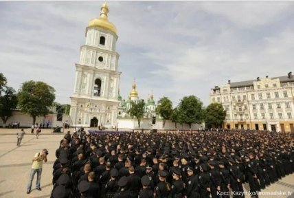 Сотрудники новой патрульной полиции присягнули на верность Украине на Софиивской площади в Киеве.
